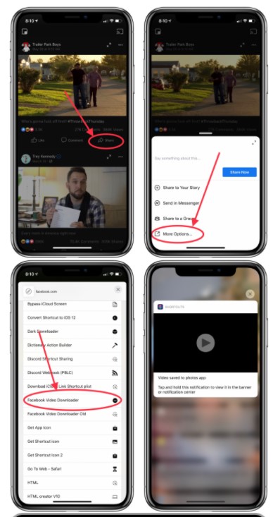 Shard - Options... - Facebook Video Downloader 순차적으로 탭하면 다운로드 됩니다.