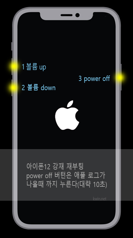 우측의 전원버턴을 애플로그가 나올때 까지 누른다.