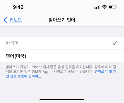 그러면, 바로 아래에 받아쓰기 언어 항목이 나타 납니다.