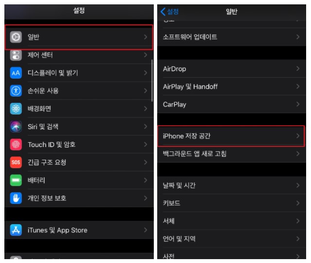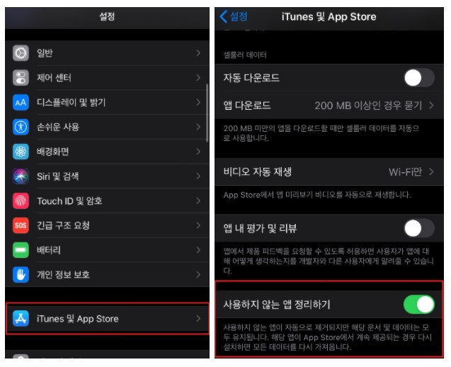 설정 - 일반 - iPhone 저장 공간 에서 활성화