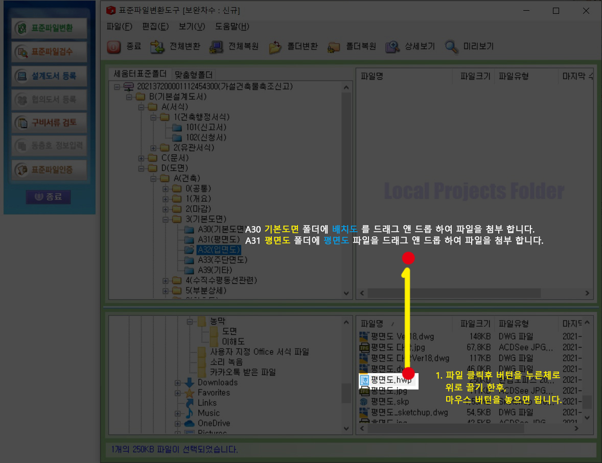 평면도 배치도를 첨부할려면, 위 화면에서 우측의 설계도서 를 클릭 합니다.