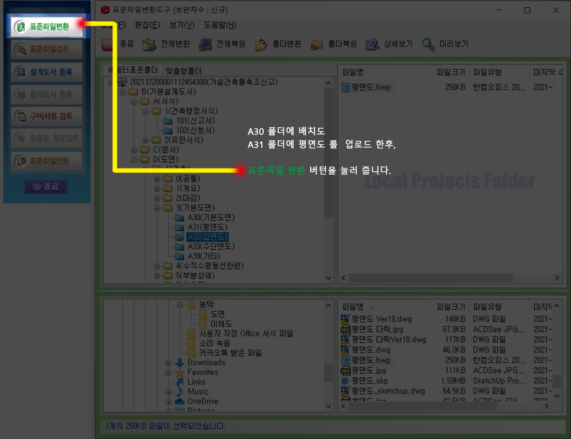 평면도 배치도를 첨부할려면, 위 화면에서 우측의 설계도서 를 클릭 합니다.