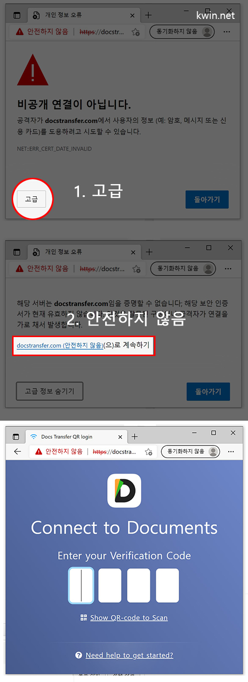 으로 접속 하면 보안 에러가 나타 납니다.