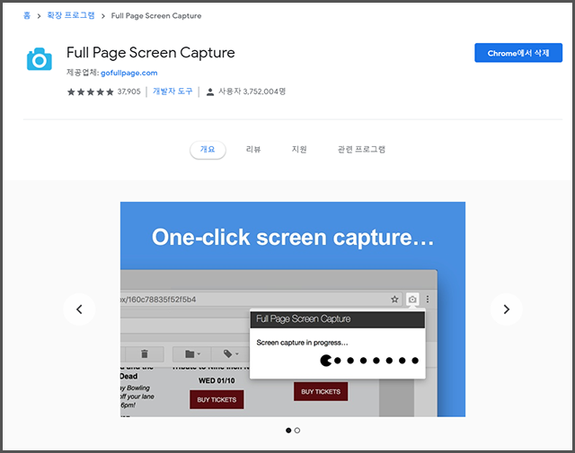 아이콘을 클릭하면, 현재 보고 있는 브라우즈의 긴 화면 모두를 하나의 이미지로 저장을 합니다.