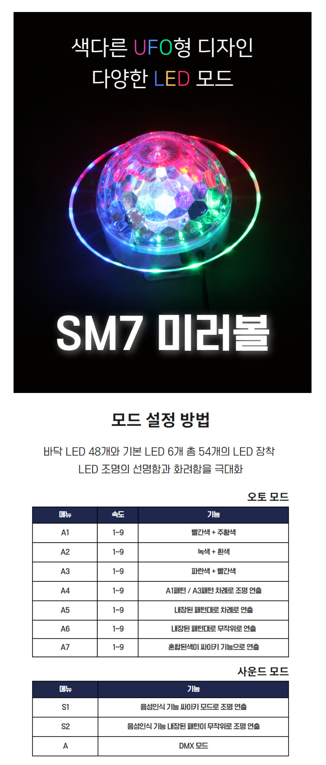 SM7 사이키조명등 설정값에 따른 조명연출 입니다.
