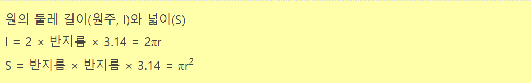원의 둘레 값 = 반지름 x 2 x 3.14