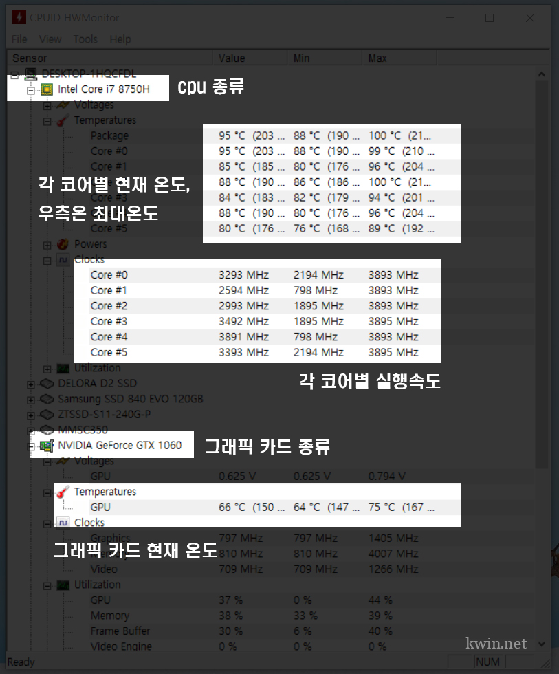 추천 프로그램은 은 CPUID HWMonitor 입니다.