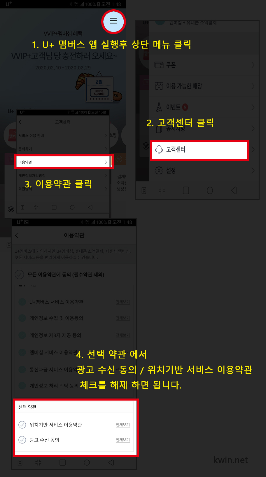 가입시 무심코 동의 되어 원하지 않는 광고가 올때 차단 하는 방법 입니다.